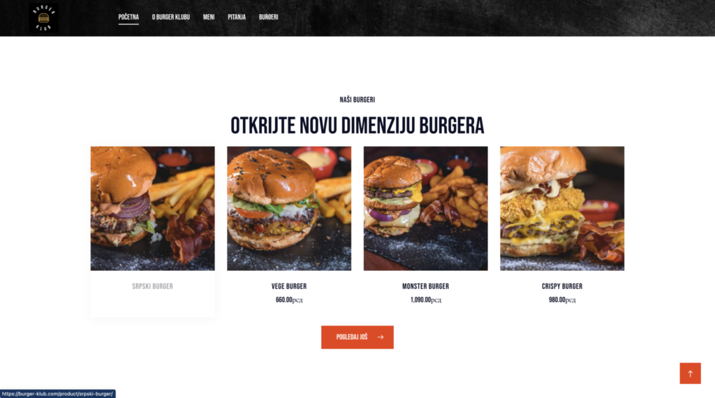 „Burger Klub” predstavlja kulinarski orijentir u svetu burgera, poznat po svojim ukusnim gurmanskim burgerima i živahnoj atmosferi. Ipak, njihova online platforma nije odgovarala žaru i šarmu njihovog restoranskog iskustva. Ciljali su na digitalni prostor koji hvata suštinu zalogaja njihovih ikoničnih burgera i odjekuje s živom atmosferom njihovog objekta.